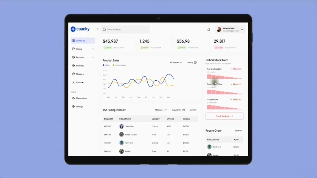 Cuanky tracks inventory for fashion brands, but the platform had a major flaw. It showed volume but ignored velocity. It told merchants they had "50 shirts" left, but it didn't tell them if that was enough for a month or just a day. This lack of context meant store owners were flying blind, leading to sudden stockouts and lost revenue. We needed to transform the dashboard from a passive list into a proactive Early Warning System that flags risks before money is lost.
